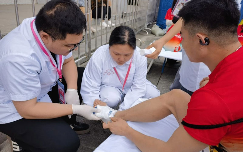 为做好赛事医疗保障工作,来凤县中医医院抽调了急诊科、内科、外科、治未病科等各科室业务骨干,同时配备了充足的急救药品、物资、器械以及中医特色诊疗物资,如中药穴位贴敷、火龙罐治疗等,为赛事医疗保障提供了坚实的物资基础。